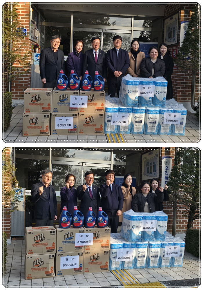 충청남도의회 행정문화위원회 후원 우리복지원 0 3 12.16 14:49 충청남도의회 행정문화위원회에서 생활용품을 후원해주셨습니다. 후원해주신 생필품으로 복지원 식구들이 행복한 일상을 보낼 수 있었습니다.후원에 진심으로 감사드립니다.
