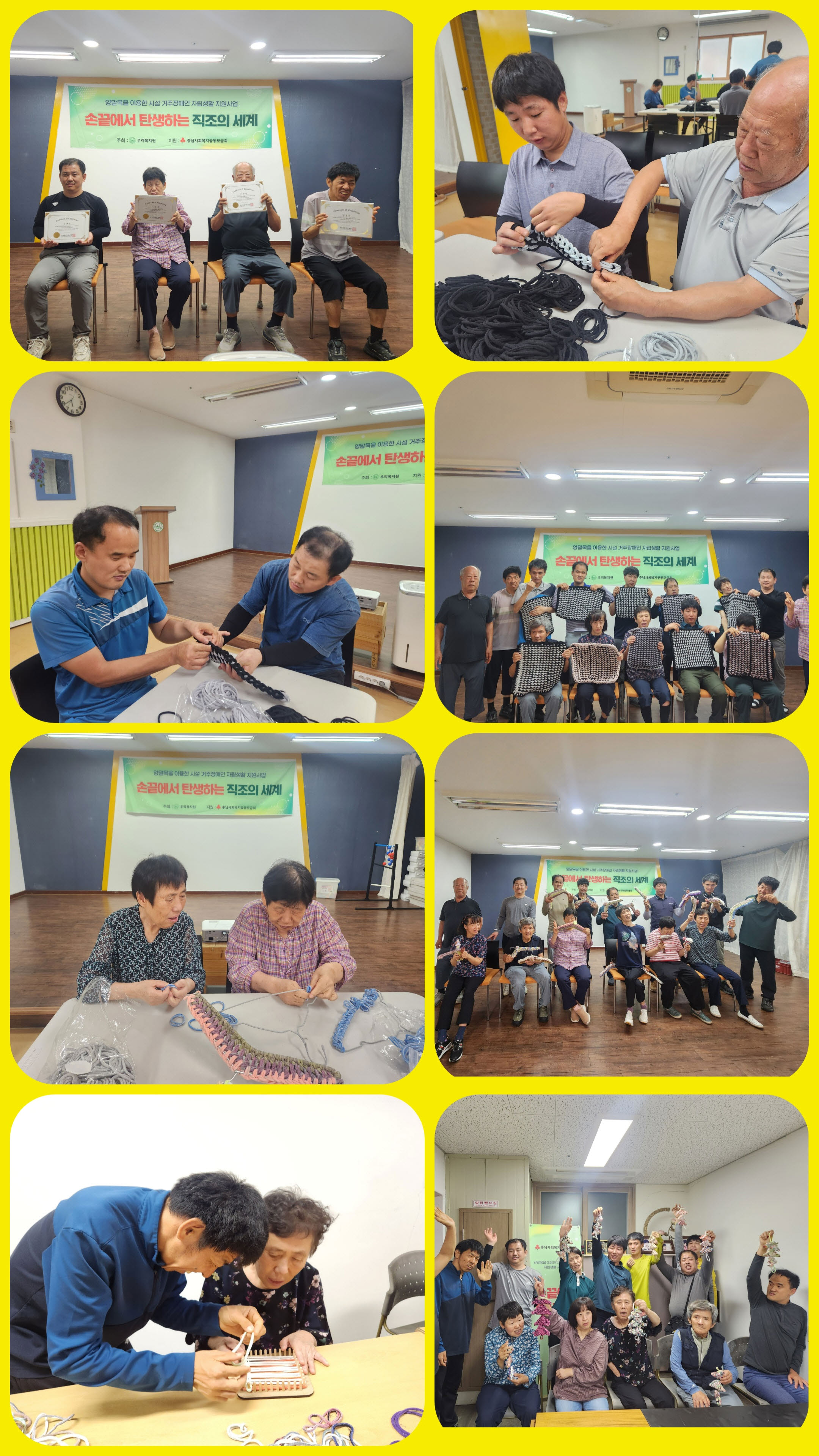"손끝에서 탄생하는 직조의 세계" 양말목 공예사 자격증을 취득하고 동료 장애인 교육 과정을 잘 마쳤습니다.