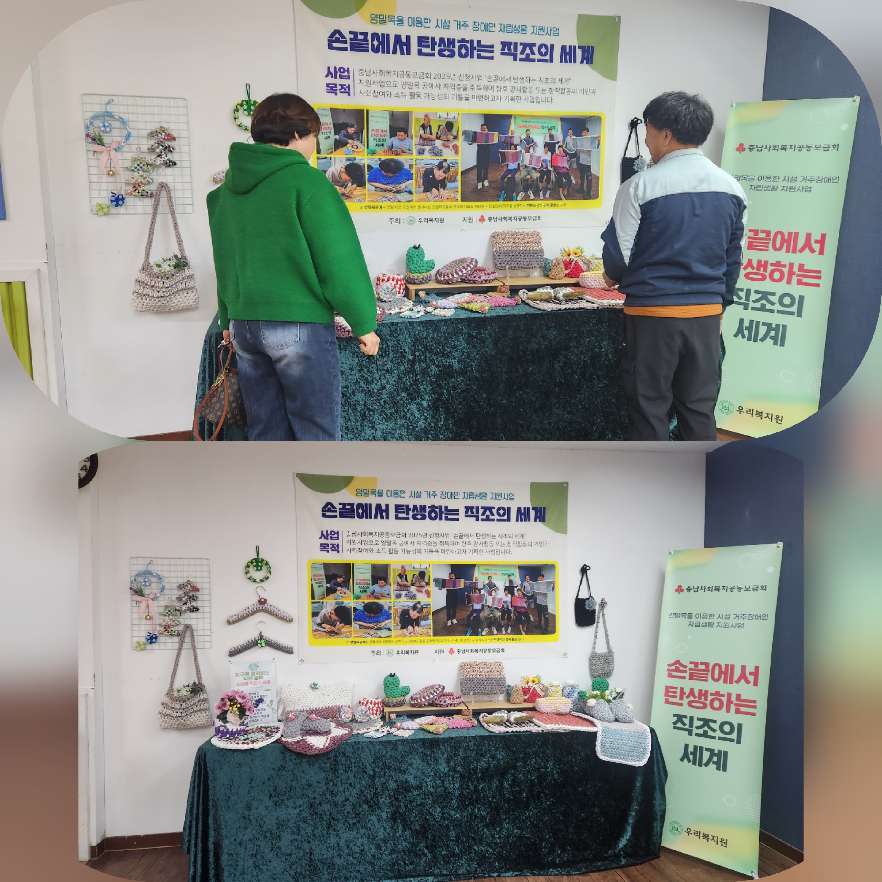 2025년 양말목 공예 심화 과정과 자격증 과정을 성실히 수료한 장애인 참여자들의 작품을 모아 작품 전시회를 개최합니다.